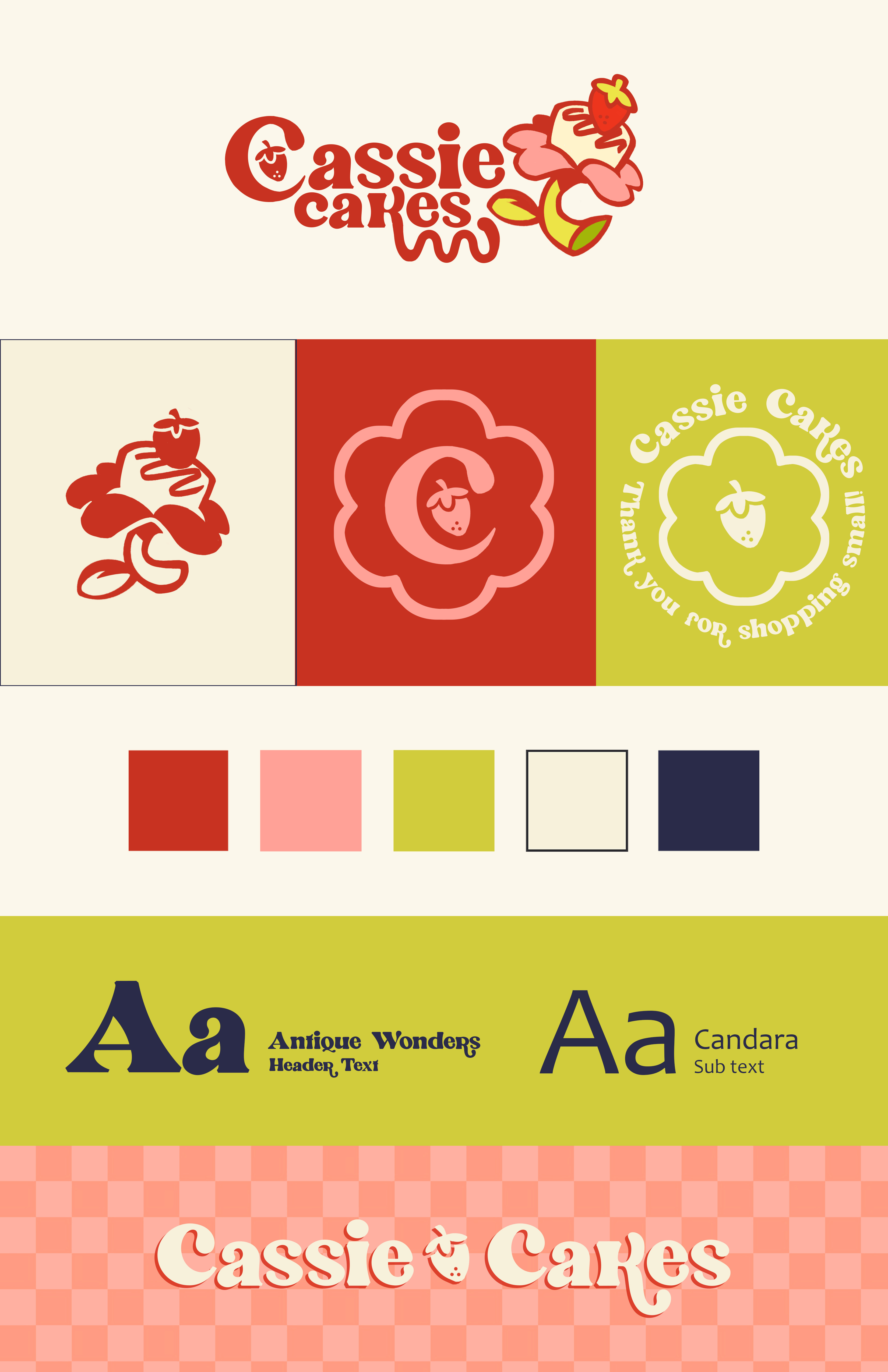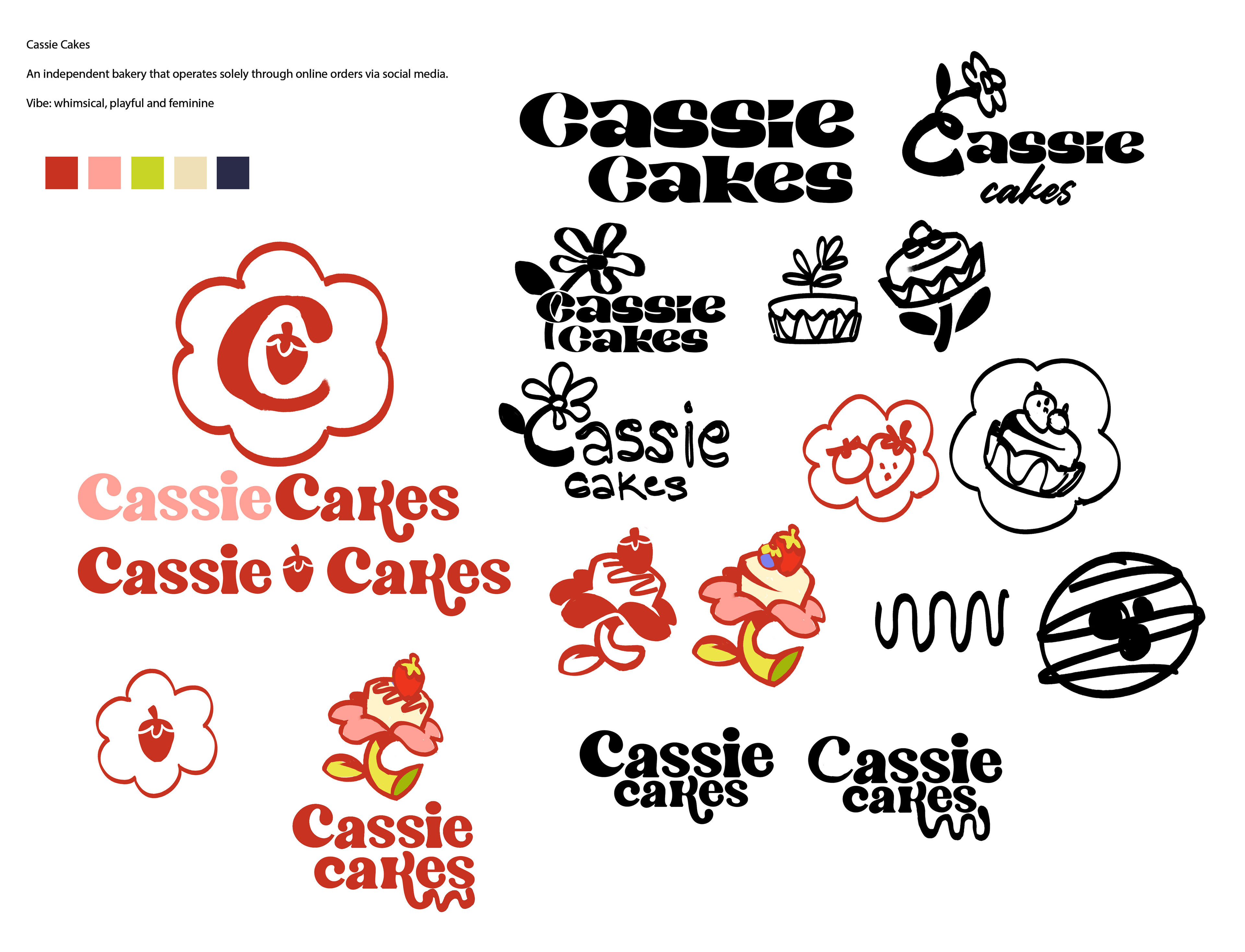 A brand identity concept for a bakery. Client brief requested a playful, feminine logo with secondary imagery for packaging stickers.